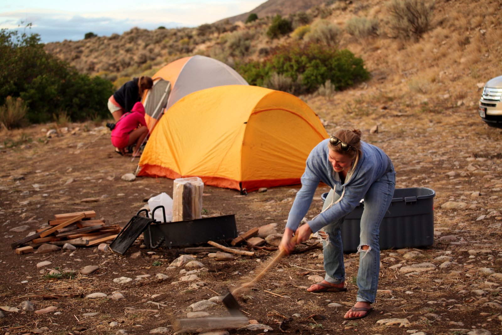Our fire!! which we later found out was illegal…. oops. At least we had time to cook our burgers!