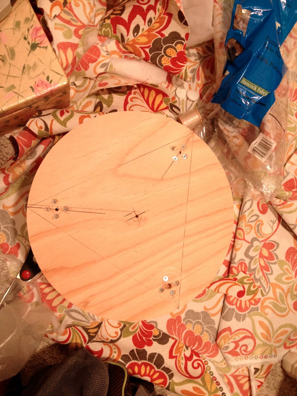 I used my new college math skills to figure out the triangle which would indicate where to screw in the three legs.