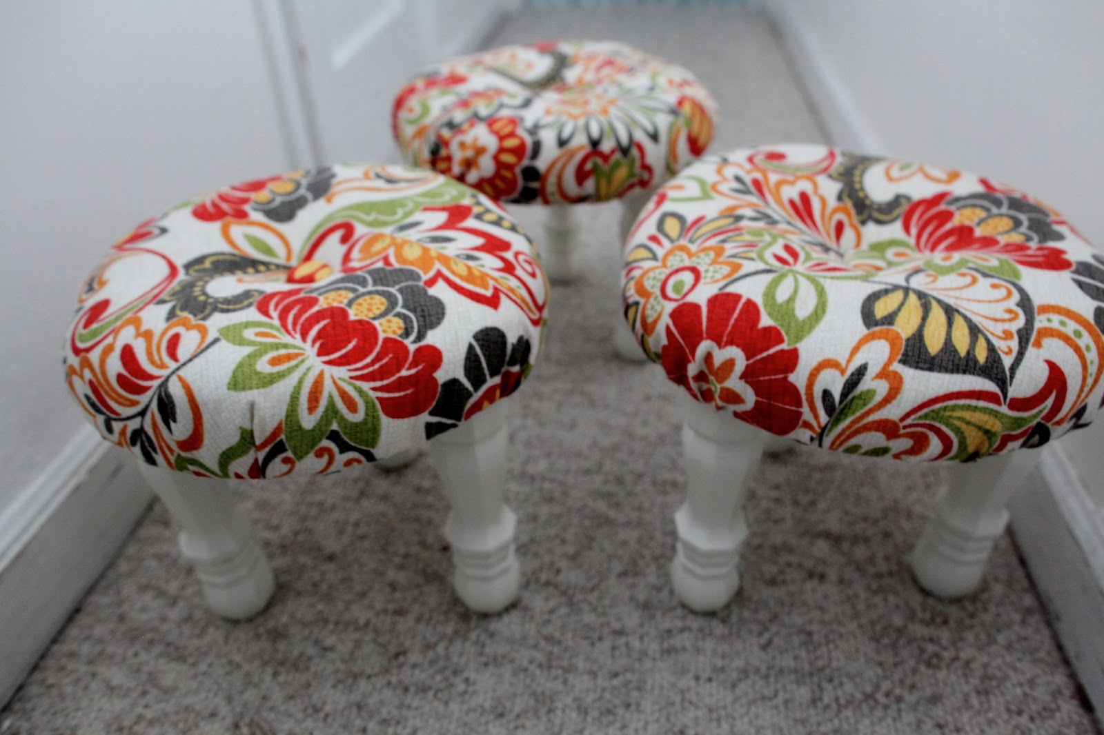 My first project started it all: Jasmine and I went to the DI, the LDS thrift store where we found some sweet items. What I got started out as an ugly dark brown, stained, and peeling table. I unscrewed the top, upholstered some foam and fabric onto it, painted the legs LIME GREEn, and then re-attached it all.