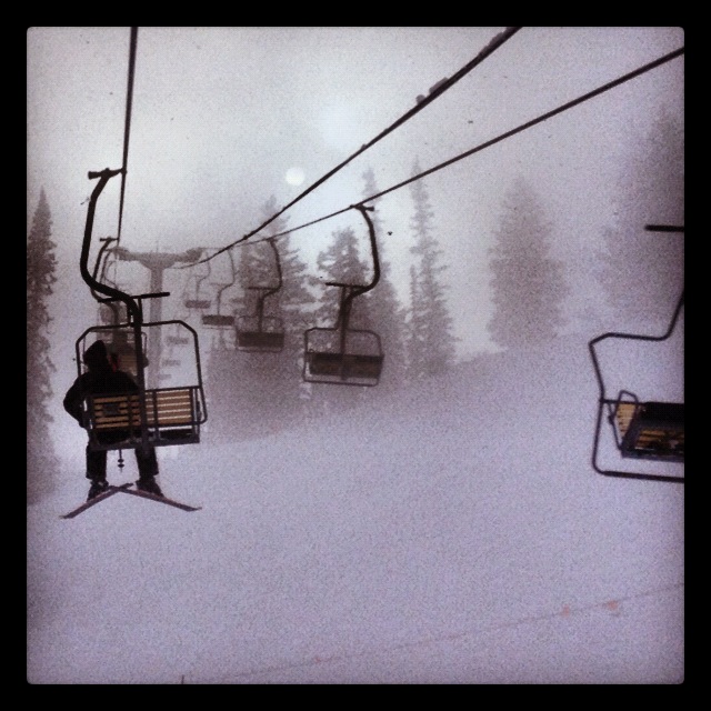 Morning at Snowbird, the sun is just peeking through the clouds.