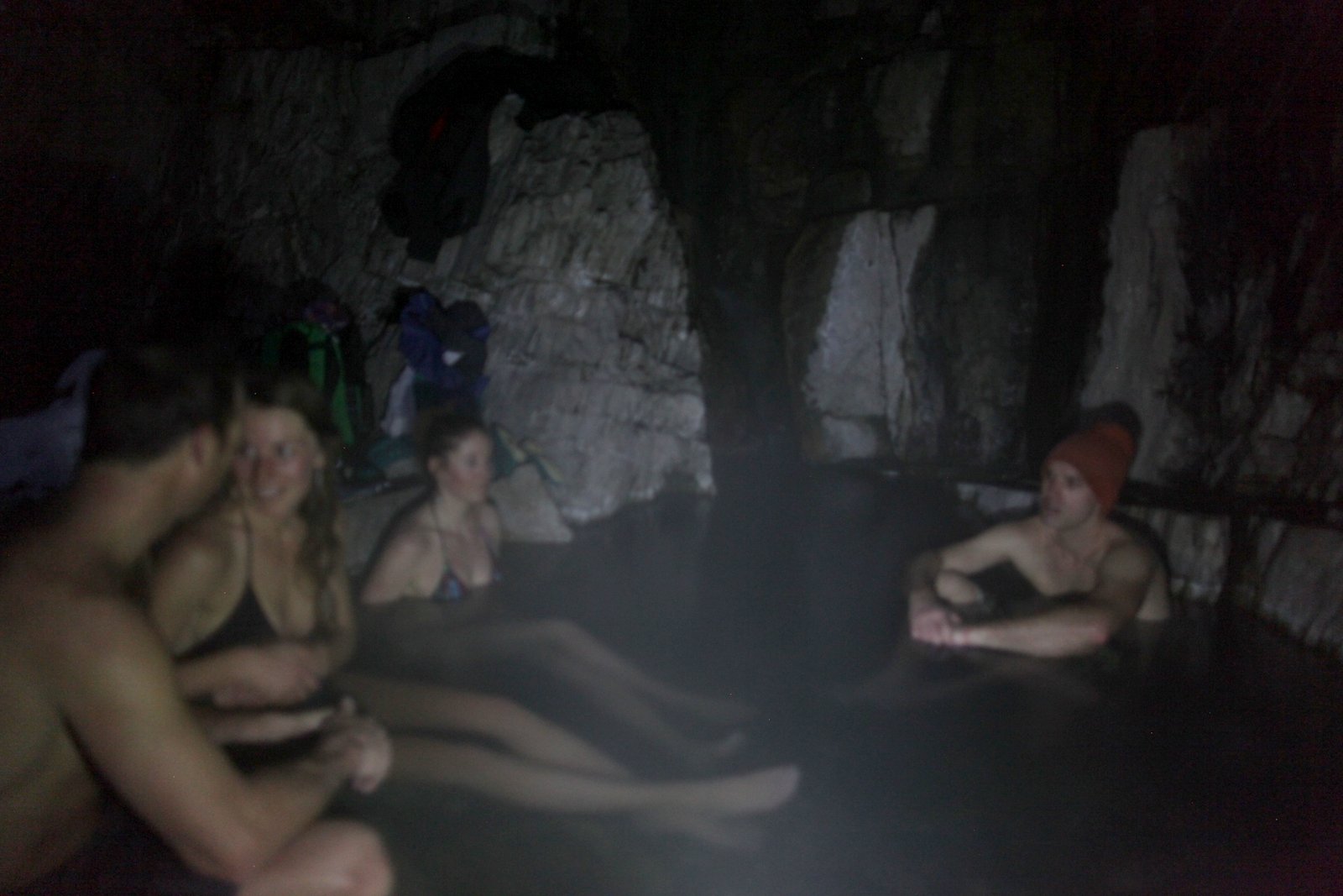 This is a confusing pic, but in order to get to the springs, we needed to cross a FREEZING river. You can see the light of some friends who already made it into the natural hot pool.