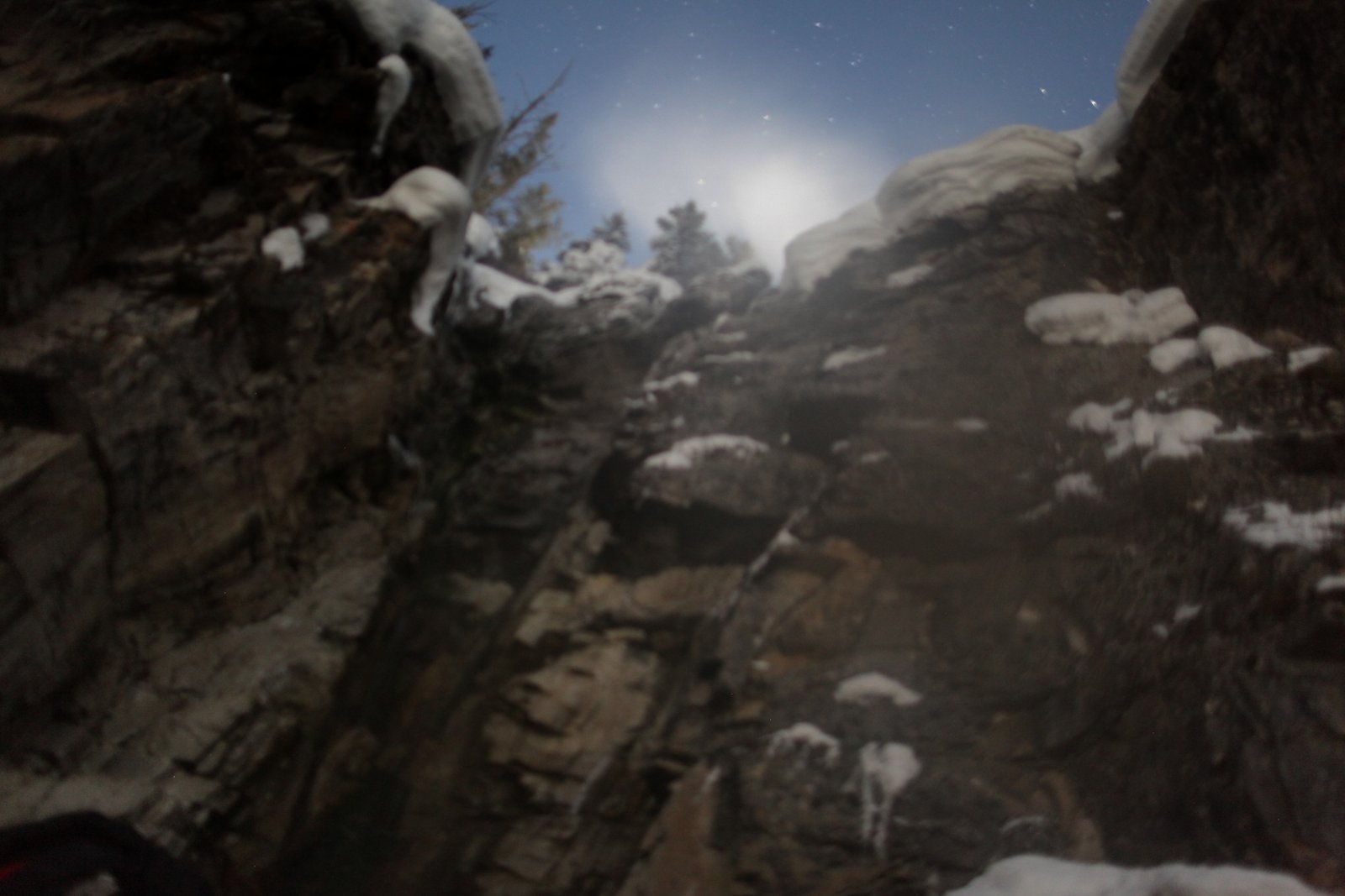 And just as we were leaving, the full moon almost poked over the cliffs.
